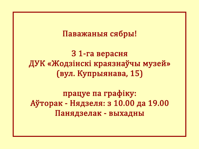 Мастацкая выстава твораў жодзінскіх мастакоў з фондаў Жодзінскага краязнаўчага музея "Прастора для думкі..." (Гарадская выставачная зала (вялікая), вул. Дзеравянкі, 14б).
